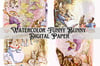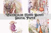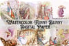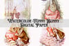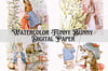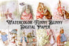 Watercolor Funny Bunny Digital Paper, Watercolor Funny Bunny vintage paper