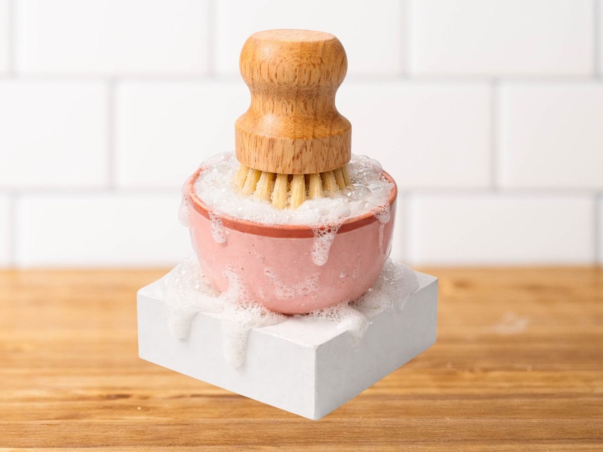 How to Use: Scrub a wet brush or sponge directly on the soap bar to create a lather. Wash dishes as usual. After use, dump out excess water and store the soap dish on the counter.