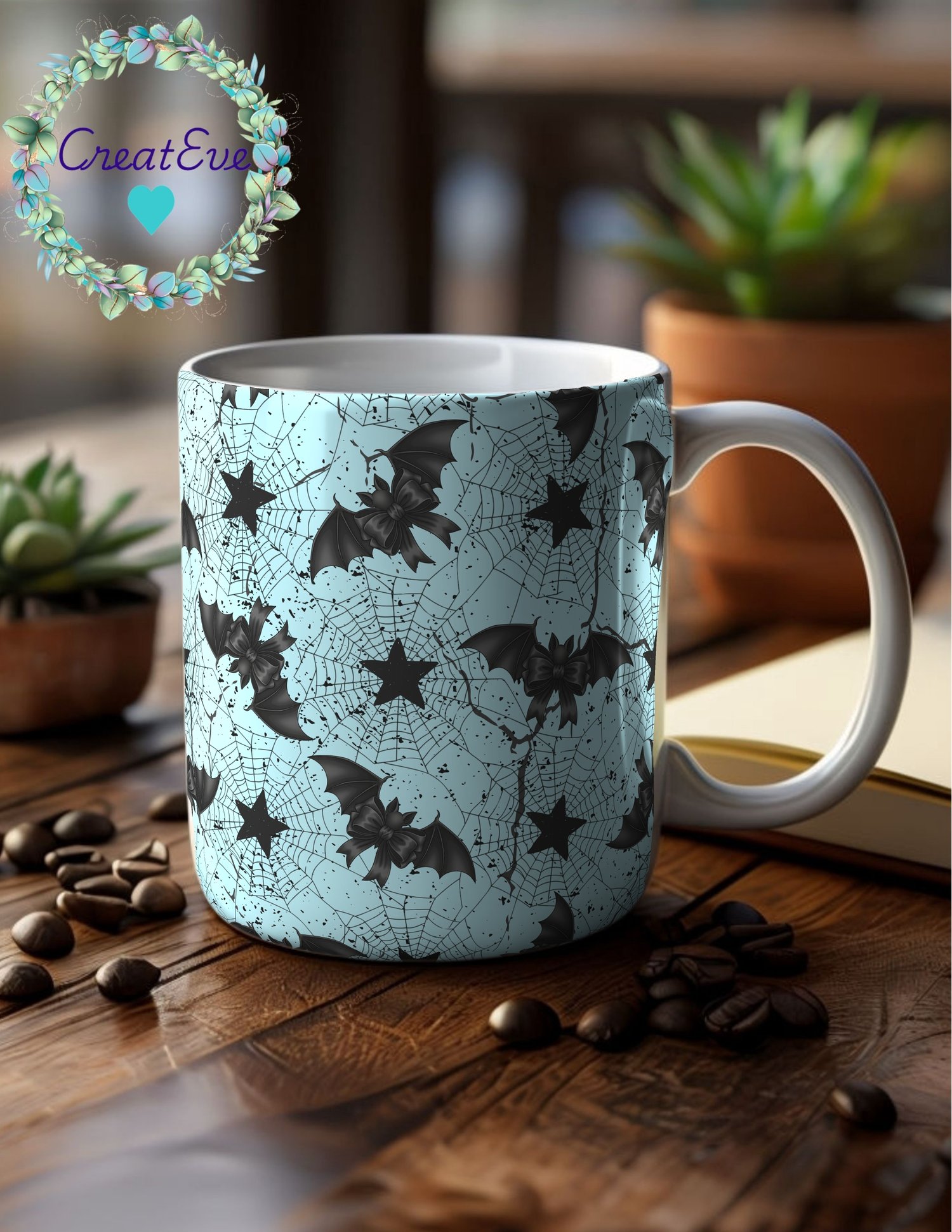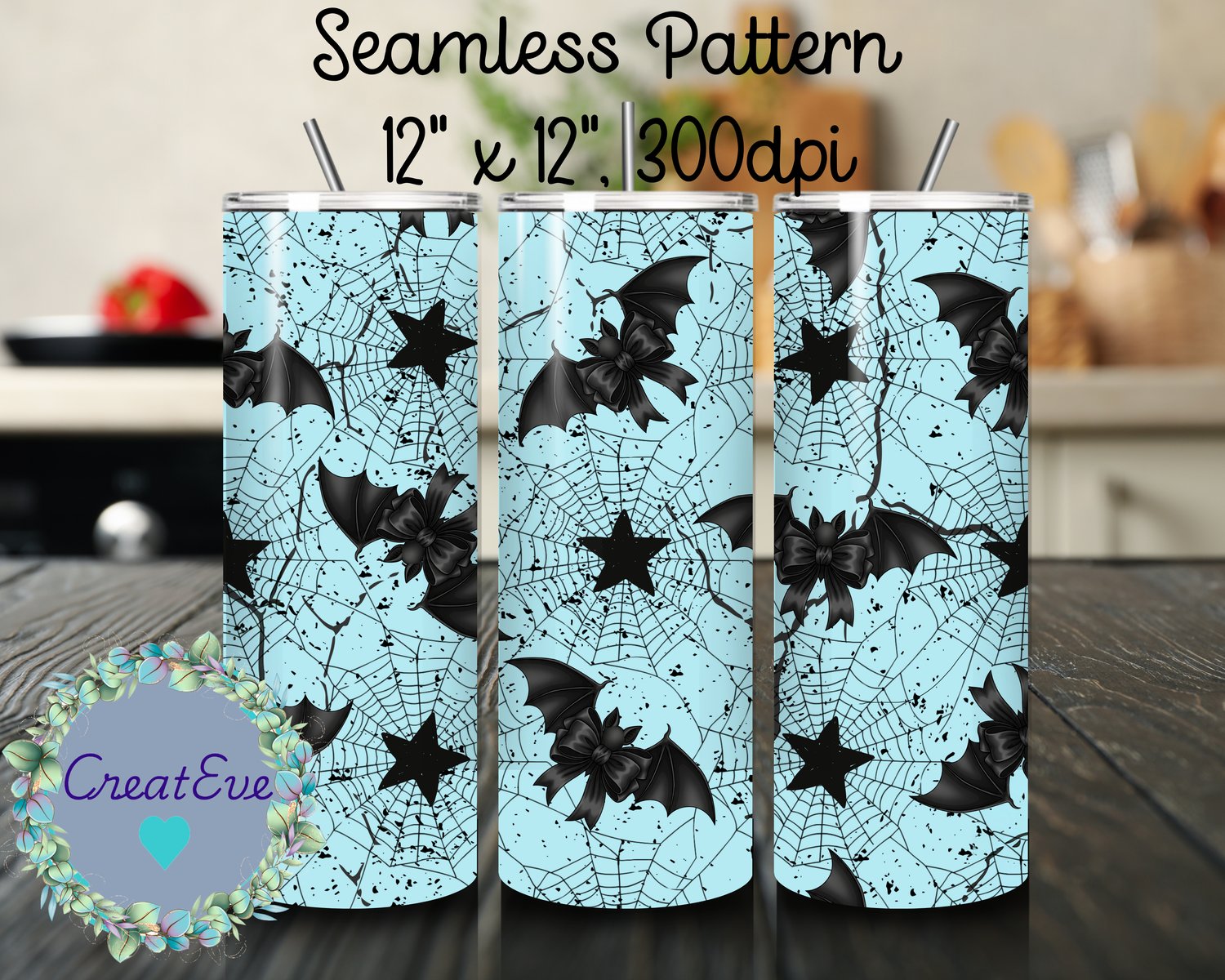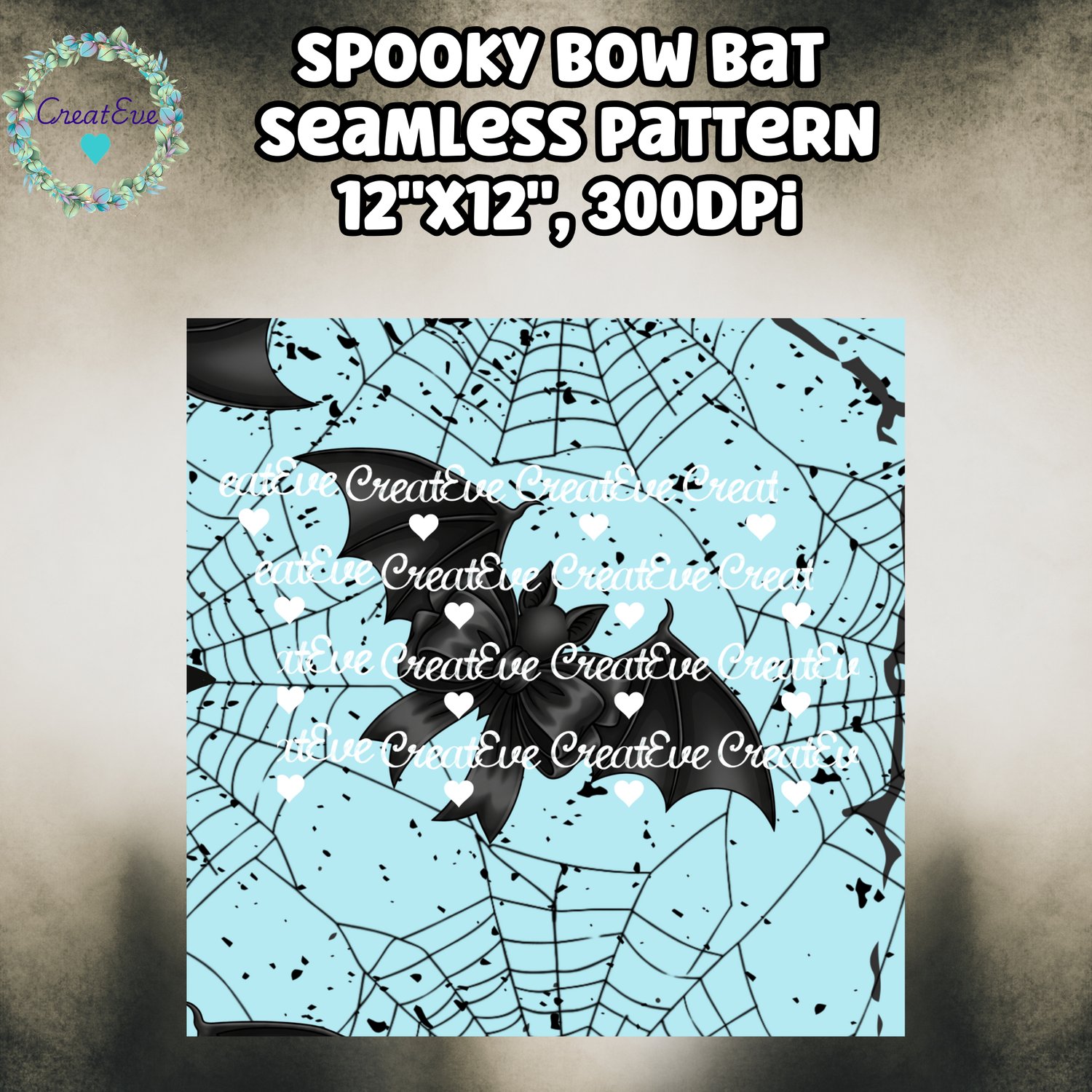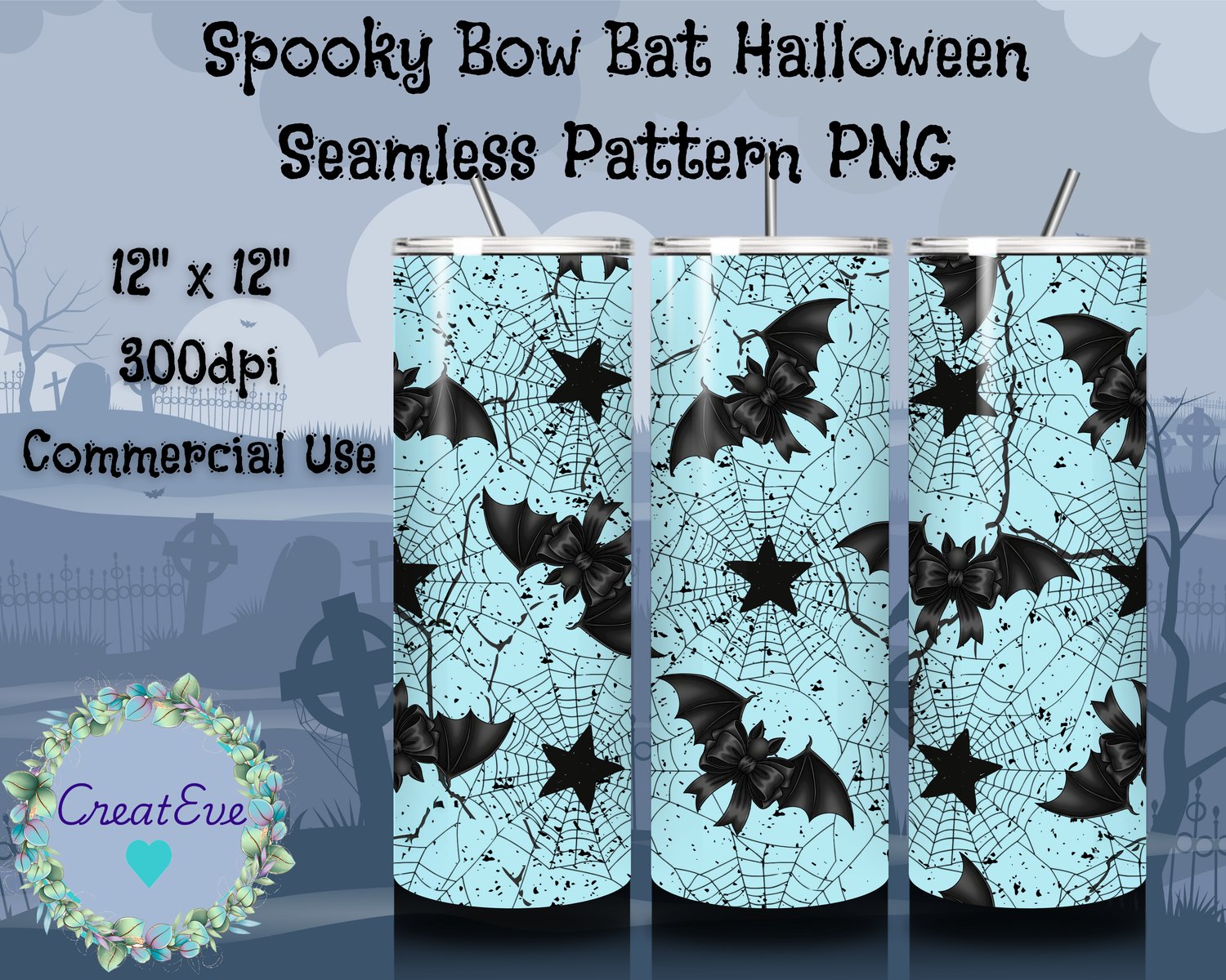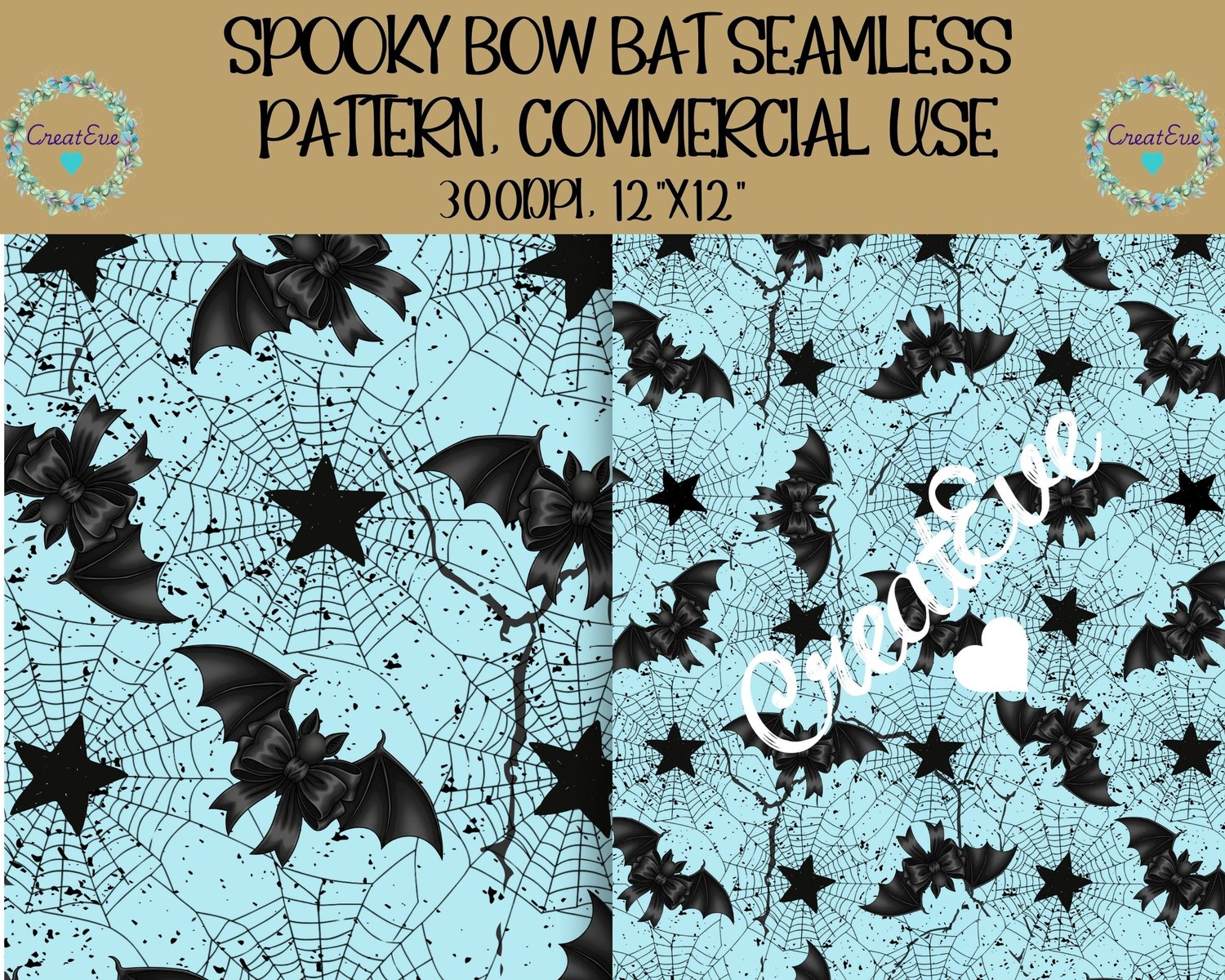 Spooky Preppy Bow Bat & Stars Seamless Pattern Commrecial Use PNG