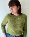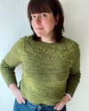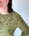 Azimut commence par un yoke orné d’un motif d’inspiration art déco. Sans être compliqué à tricoter, c’est le petit plus qui attire le regard et donne toute sa personnalité au projet.