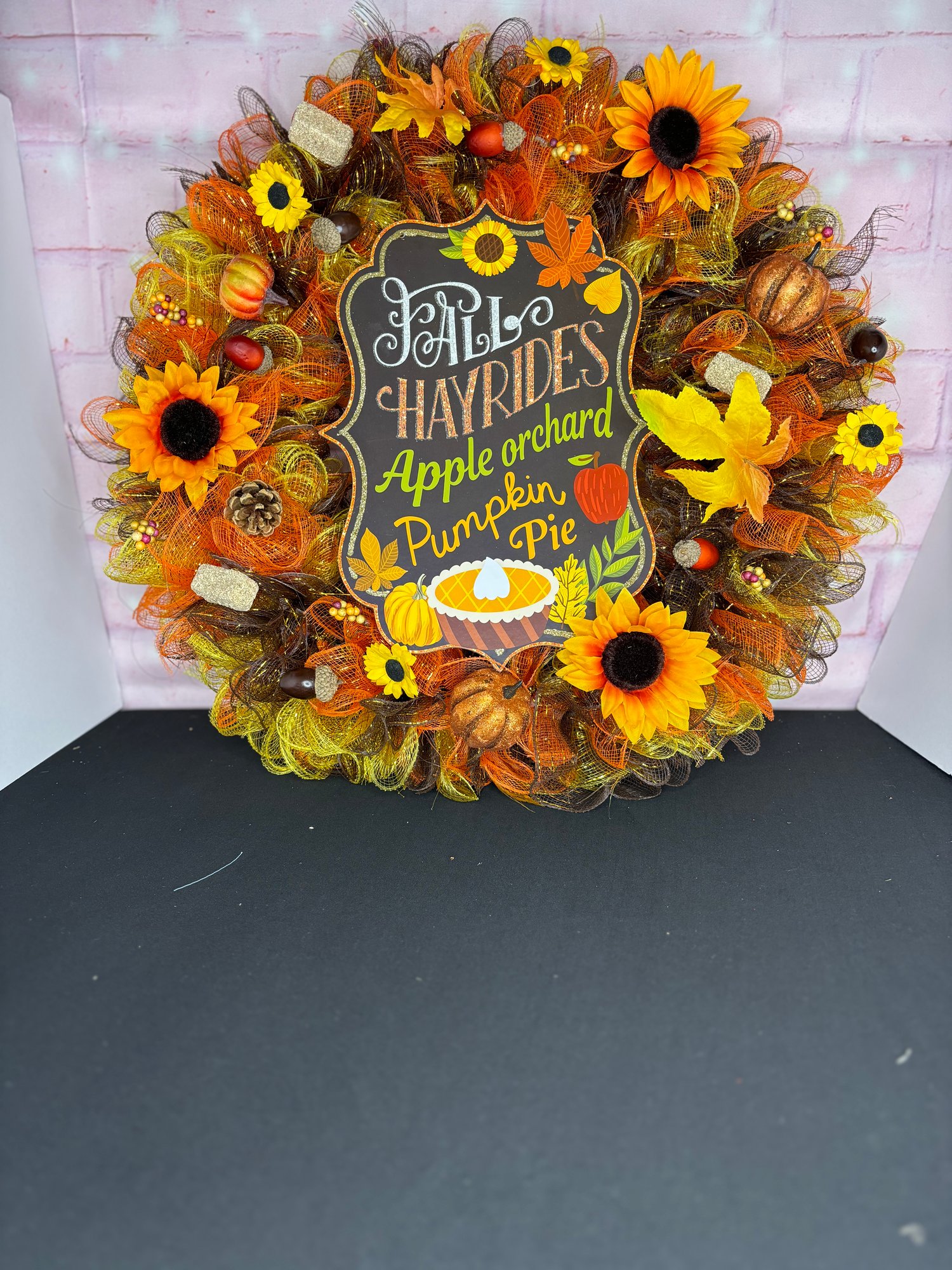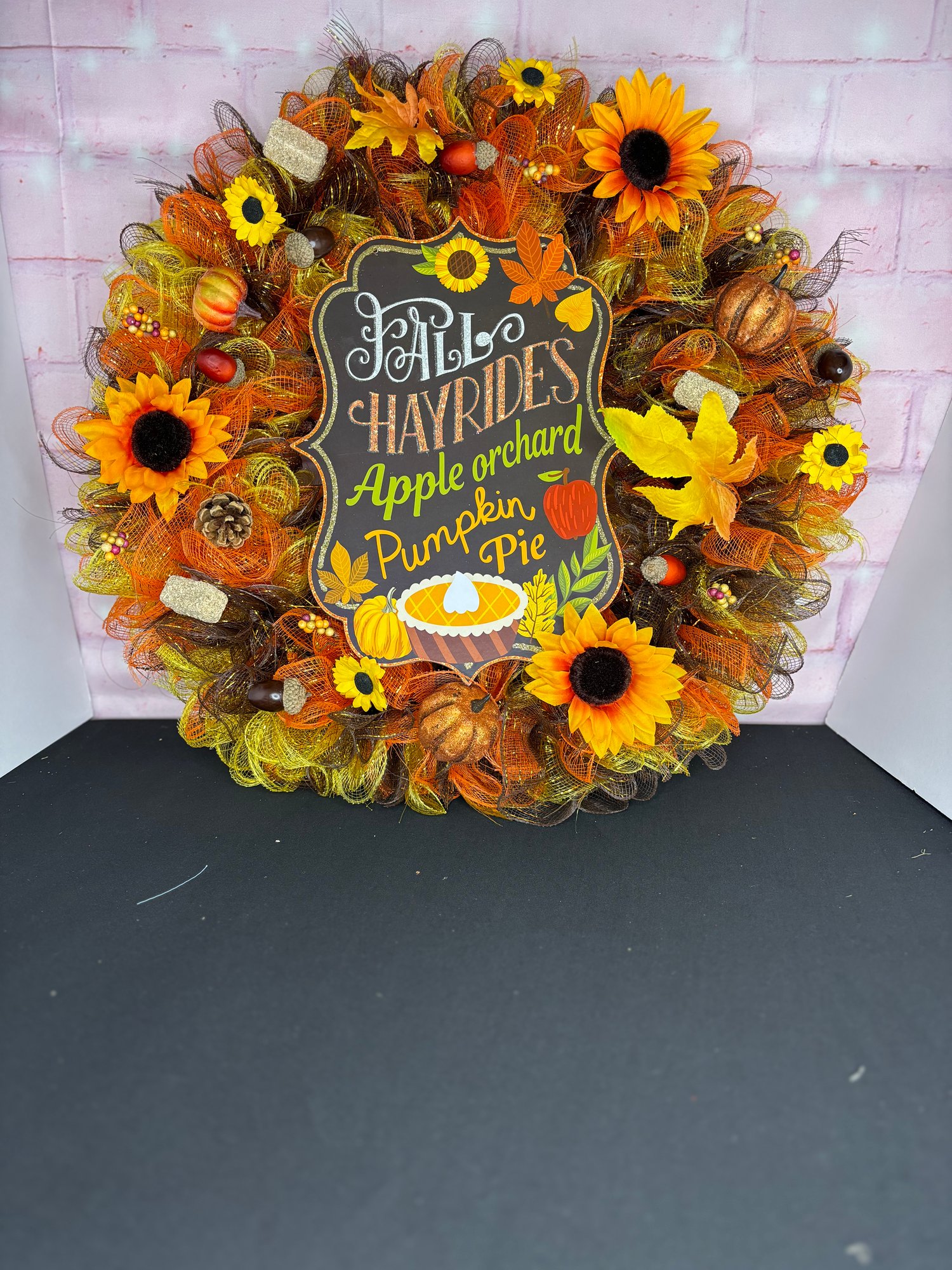 Celebrate the bounty of the season with our Fall Harvest Wreath! This beautifully crafted wreath is bursting with vibrant autumn colors, featuring a mix of pumpkins, gourds, sunflowers, and fall foliage. Perfect for welcoming guests to your home, this wreath captures the essence of harvest time and adds a cozy, rustic charm to any space. Whether displayed on your front door, above your mantel, or as a stunning centerpiece, this wreath brings the beauty of fall indoors.