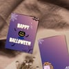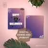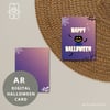 Deep purple 3D Text with pumpkin AR Effect Halloween Greeting Card Printable