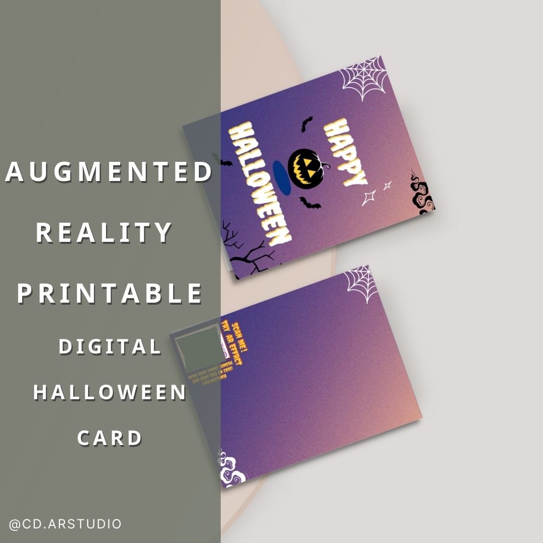 3D Text with pumpkin AR Effect Halloween Greeting Card Printable 🎃