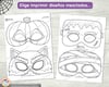 ¡Haz que tus actividades y manualidades de Halloween sean más divertidas para los niños con este pack de DIEZ espeluznantes máscaras de Halloween, para colorear y decorar!