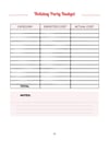 Page 2 — Holiday Party Budget with expected vs actual and notes.