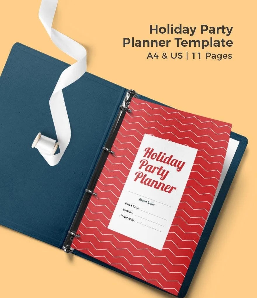 Holiday Party Planner — 10-page printable PDF with budget, quick list, grocery & gift lists, menu, guest list, program and playlist. Instant download; print at home fast.