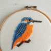A counted cross stitch pattern of a kingfisher.