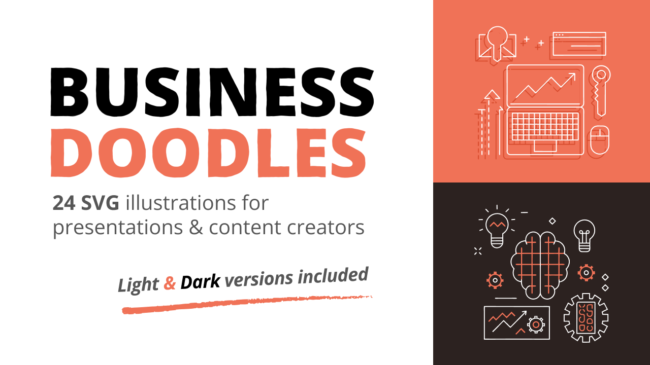 Level up your creative work with this exclusive pack of dual-style business doodles.