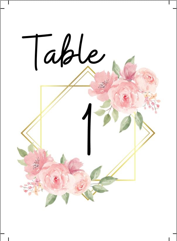 Printable Wedding Table Numbers 1-40 ,Seat planner and Menu - pink flower