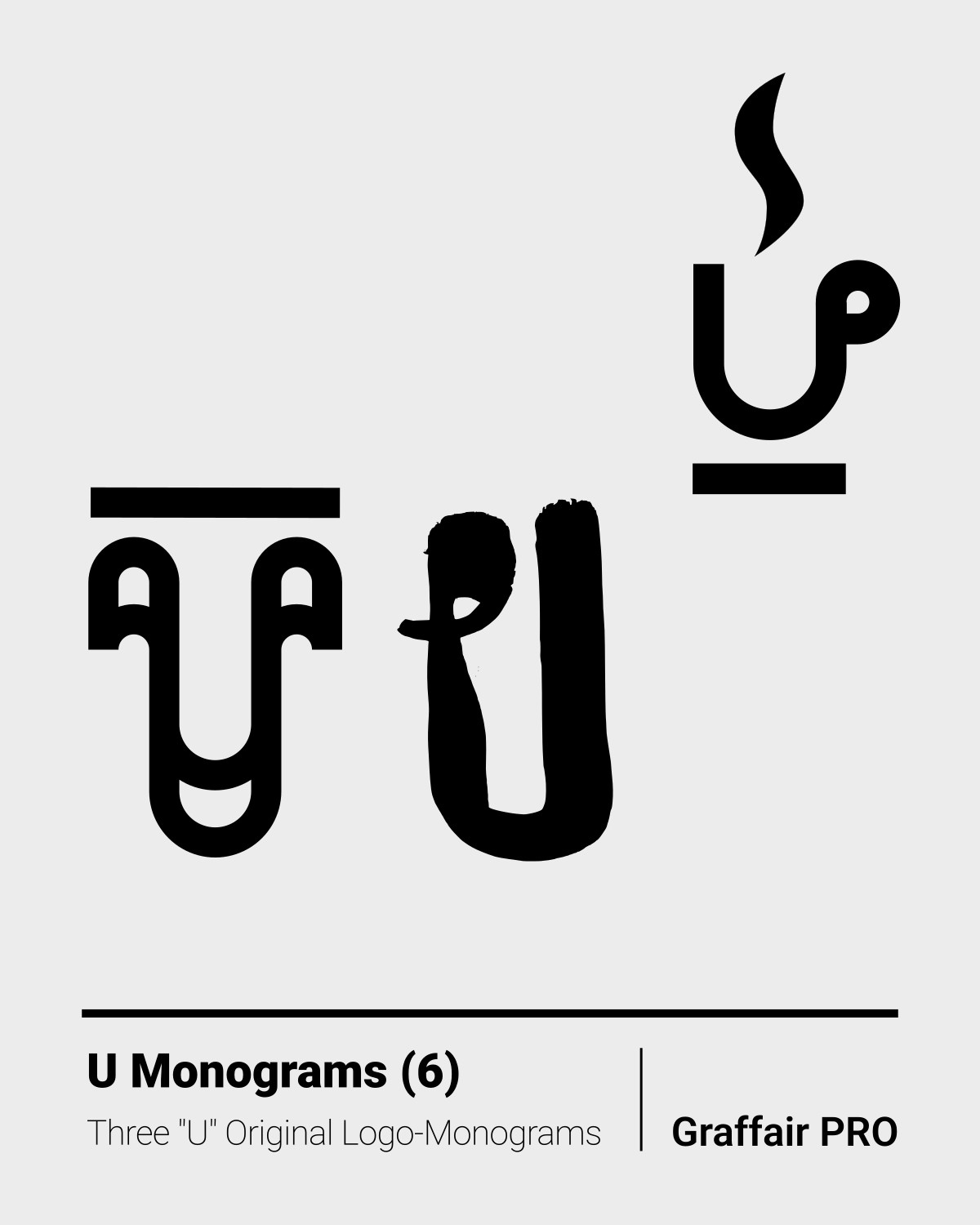 U Monograms (6): The 6th set of three original "U" logo-monograms, included in the "1050 SVG Monograms" super bundle, amongst others, which also features an Index catalog.