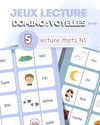 Ce set comprend 5 dominos de lecture, spécialement conçus pour apprendre à lire des mots très simples, sans sons complexes. Les lettres muettes sont grisées pour faciliter la reconnaissance et rendre la lecture plus accessible.