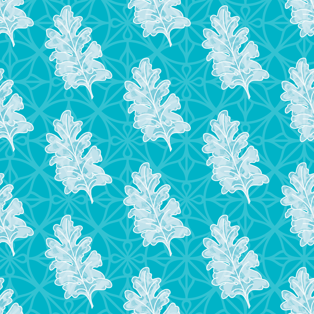 Dusty Miller foliage vector illustration. Turquoise leaves seamless pattern with cross-hatching style.