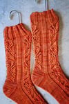 • Instructions are provided for both Cuff Down and Toe Up. The Cuff Down method is first, followed by Toe Up instructions. The stitch pattern being used for the leg and foot of the sock is first detailed below, followed by a general outline of the sock construction.