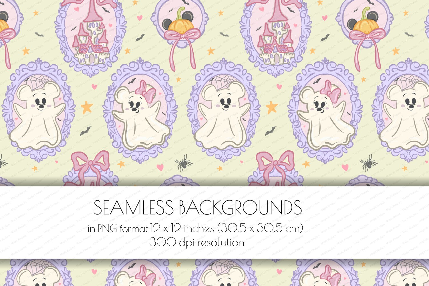 This Halloween Mickey & Minnie Ghost Seamlessbackground will be perfectly sutable for projects such as printing projects, sublimation,party invites, scrapbooking, greeting cards !!!