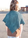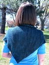 This is a simple shawl knit from point to point in reverse stockinette st. This was initially designed as a nursing shawl, but I wear it all the time as an accessory. It is knit in a rather open, loose gauge, to create an airy feel to the shawl, so remember that if choosing an alternate yarn. I used all but around 5 yards of the yarn, so count on using the whole skein. It is a perfect choice for the one skein purchase of a color that you loved.