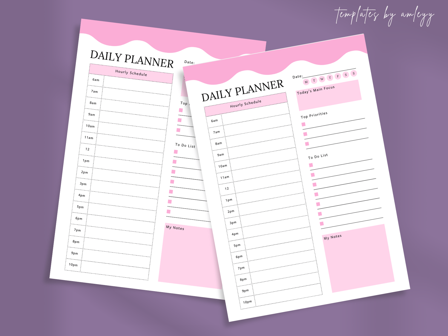 Pink Minimal Daily Planner Template for Canva – Easy to Customize, Elegant, and Functional Planning Tool