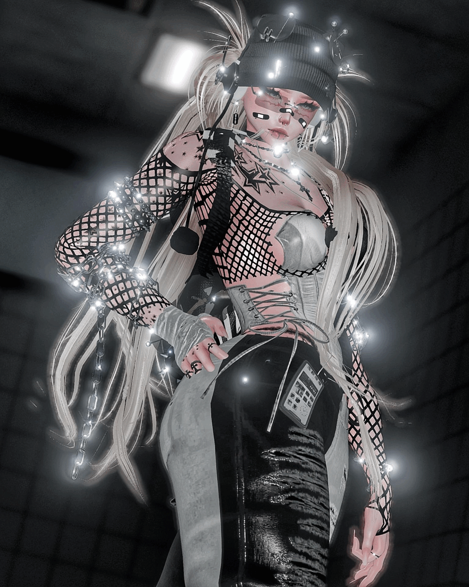 Banadge face / arm chains / barbwire / bone / eyepatch / handwrap / Piercings by ( Røses no REUSE)