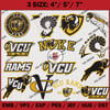 14 VCU Rams Bundle Embroidery Design Files, NCAA Embroidery files, NCAA VCU Rams embroidery Design, Digital Download