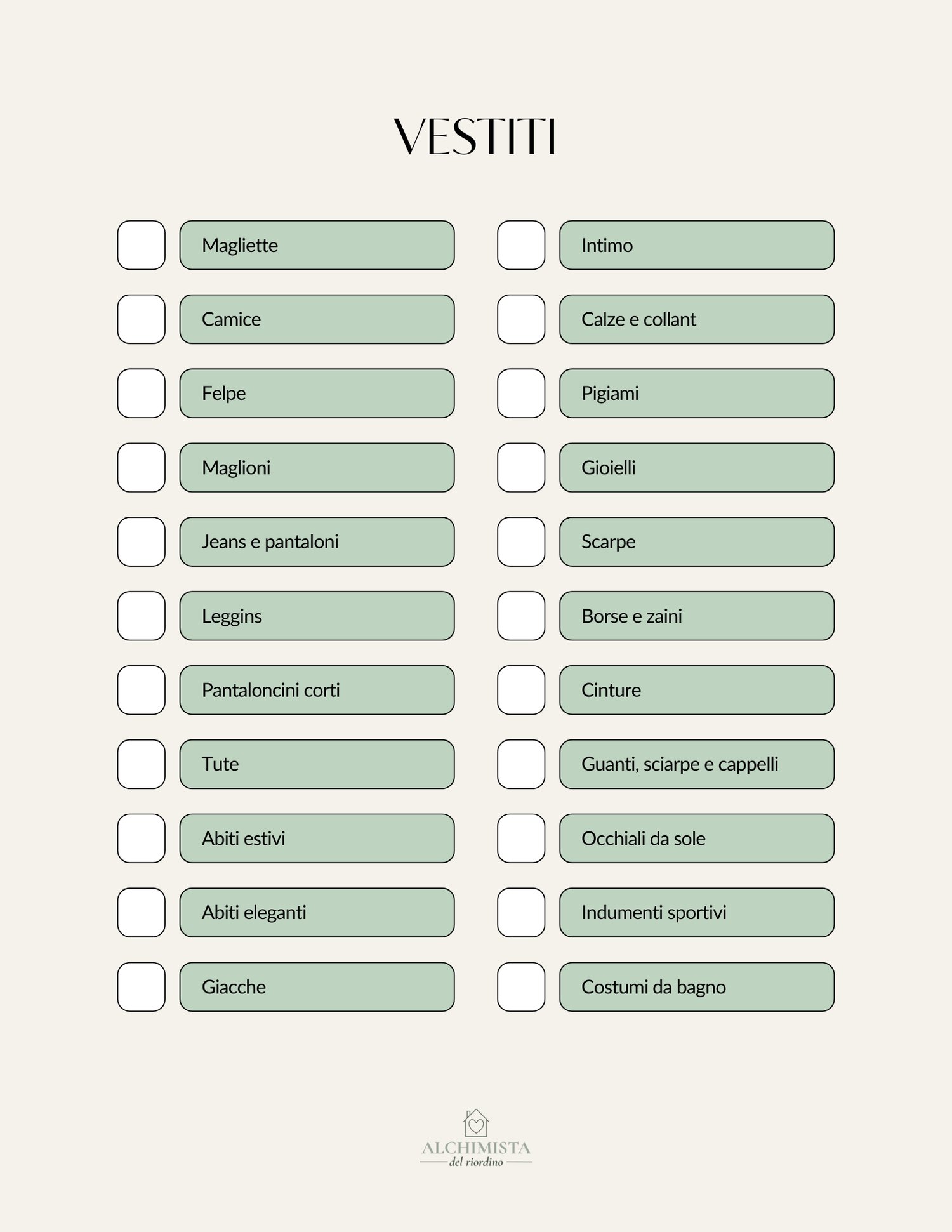 Alchimista del Riordino – Checklist Decluttering
