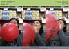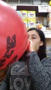 Zuzia b2p's a large red balloon in her shop! It was very scary but funny to her.