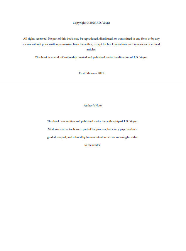 Through concise, high-signal pages, J.D. Veyne shows how to stop performing “niceness,” protect your energy without guilt, and choose calm that doesn’t collapse into compliance. Not hard—honest. Not loud—grounded. Peace that includes you.