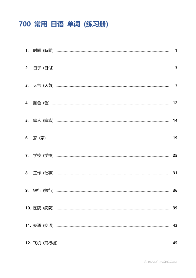700 常用 日语 单词 (练习册) [PDF]