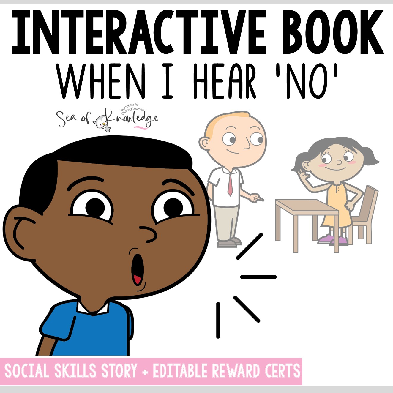 accepting no for kids, teaching no means no, emotional regulation story, preschool behavior support, handling disappointment, coping skills for kids, calming down when told no, social emotional learning printable, classroom behavior expectations, SPED visual supports