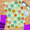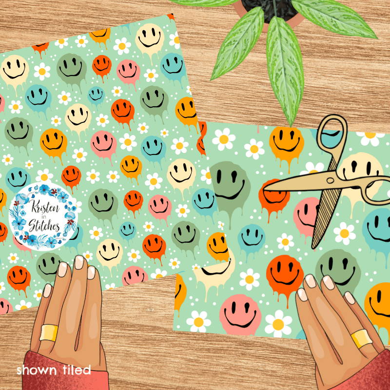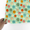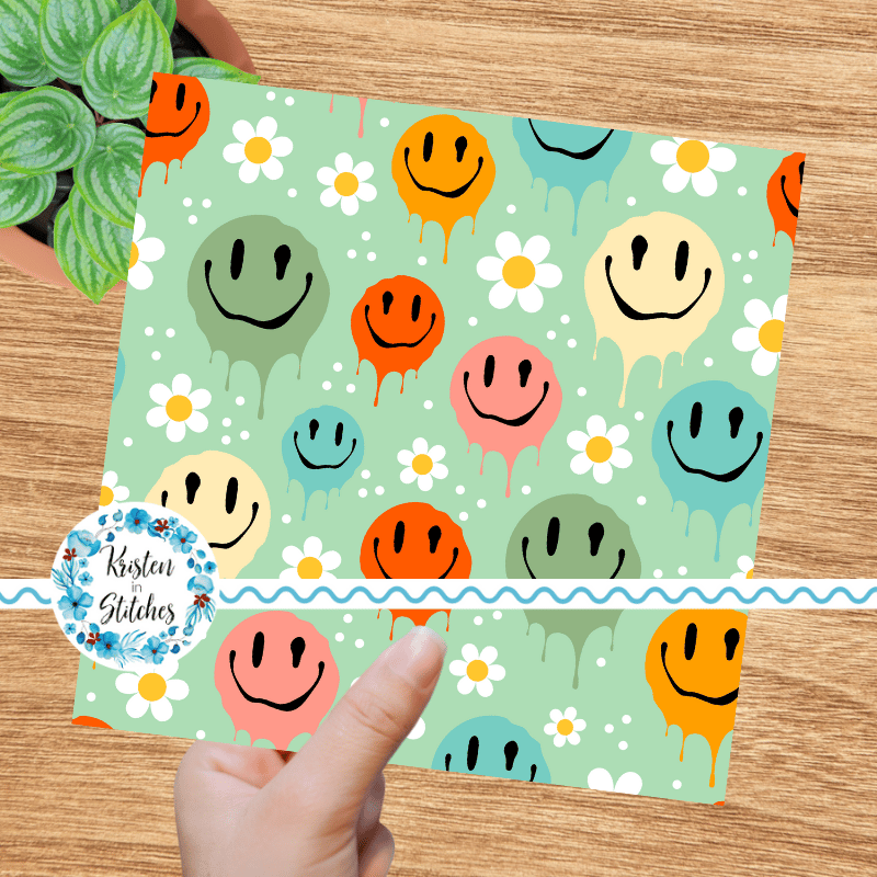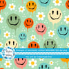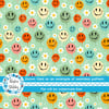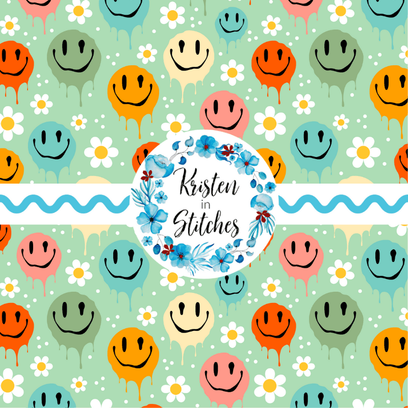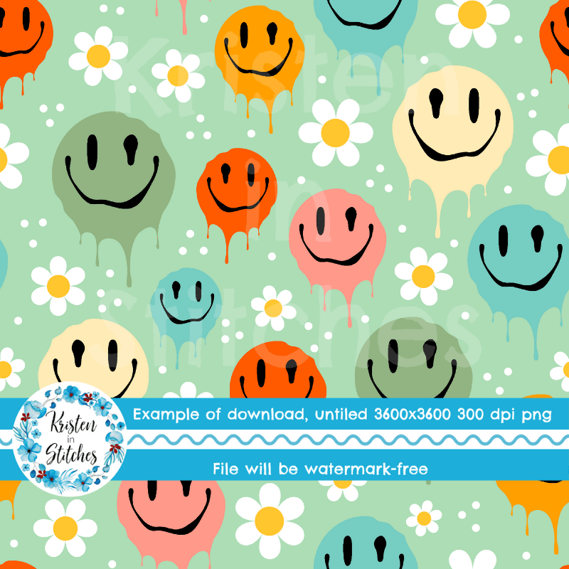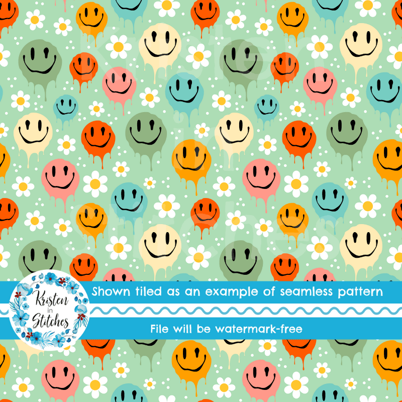 Drippy Melty Happy Faces Seamless Pattern, Mint