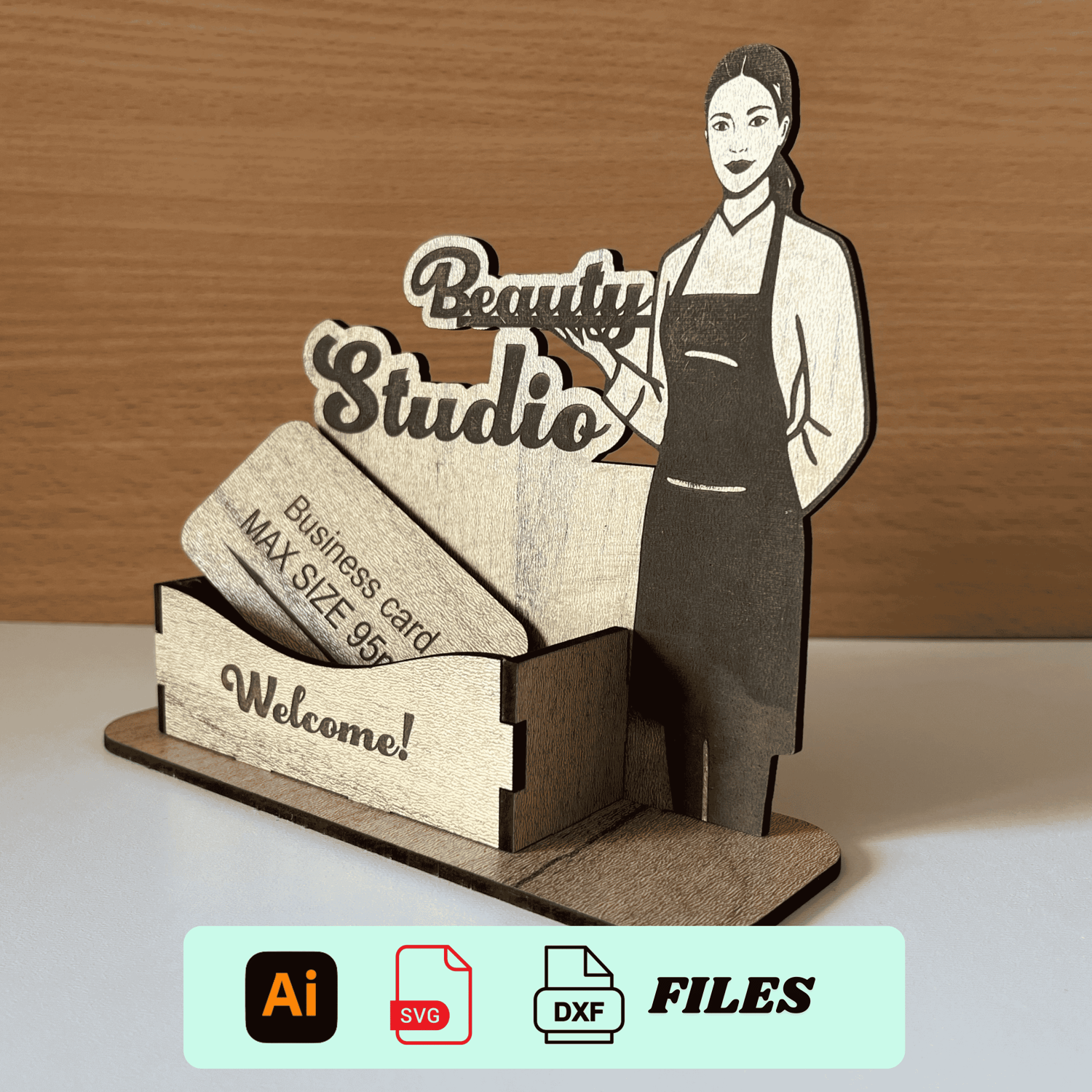 Business Card Holder For Beauty Studio - Files For Laser Cutting SVG,DXF,AI Files 3mm