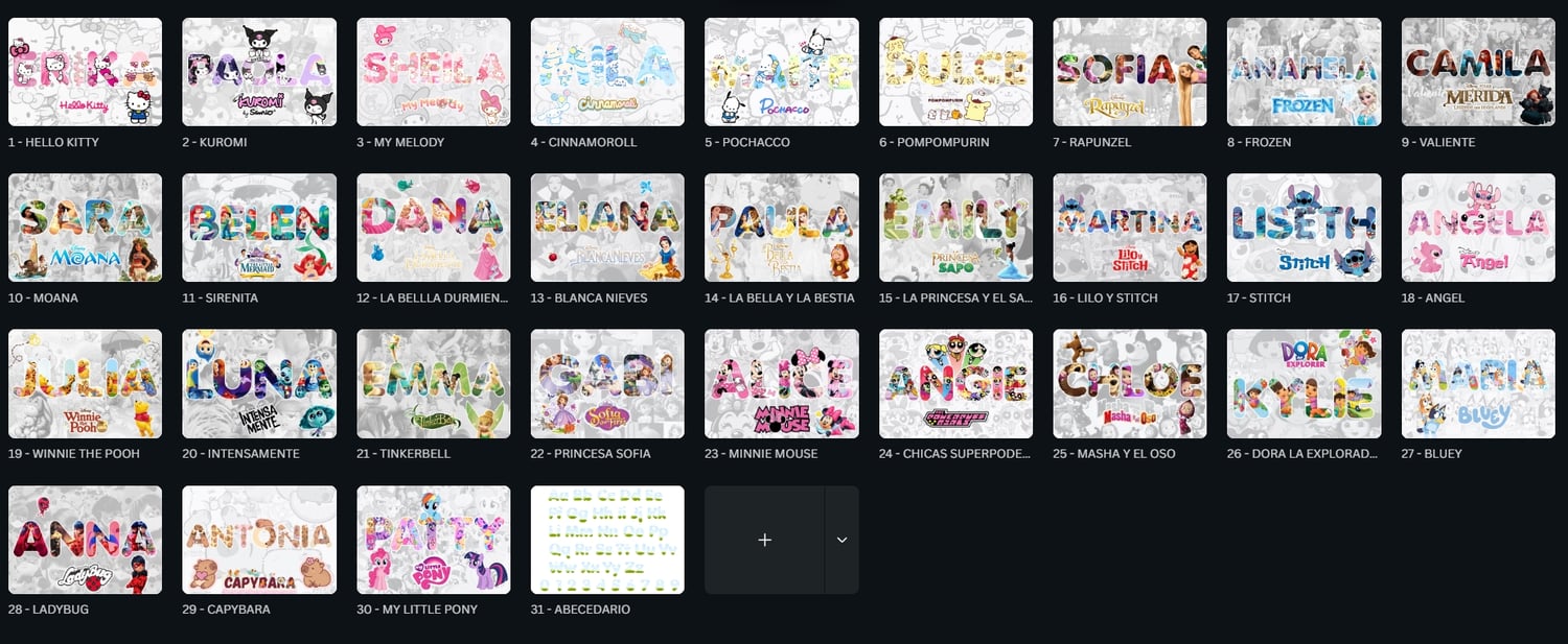 Traemos los famosos plantillas virales! Las 30 plantillas son completamente diferentes, de 30 diferentes personajes encantadores con nombres femeninos. Al final de las plantillas se encuentra el abecedario completo de las letras utilizadas (estas letras no se encuentran dentro de CANVA) los marcos de letras son elaboradas por nosotros.