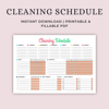 EDITABLE Cleaning Schedule Planner, Digital Weekly Cleaning Checklist, Family Kids Chore Chart List, Household Cleaning Printable PDF,