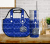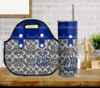 Zeta Phi Beta Sorority Denim and Leather Purse Look 20oz Skinny Tumbler and Lunch Tote Design PNG Bundle Royal Blue and White, sublimation