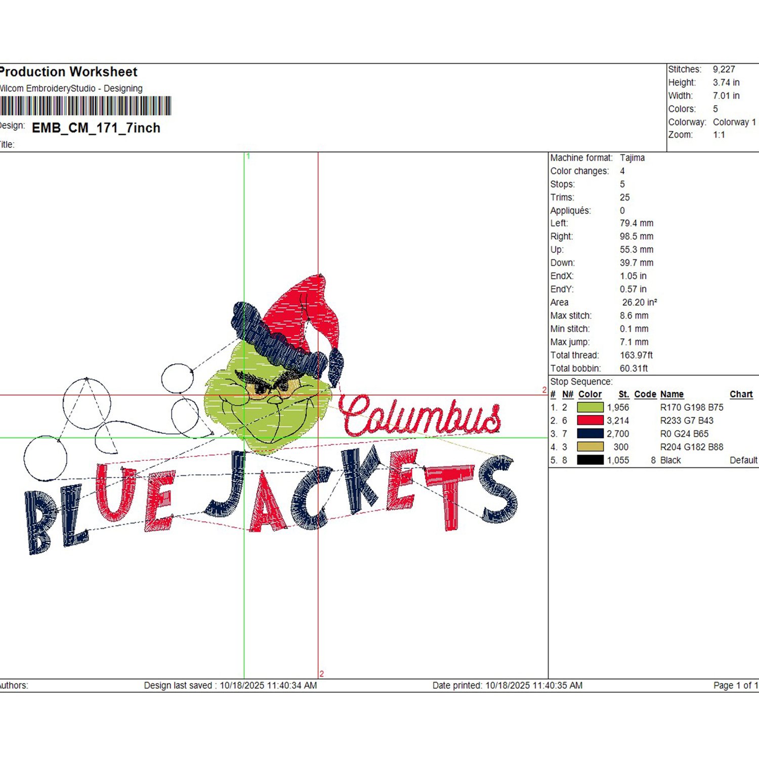 #ChristmasGrinch #ColumbusBlueJackets #NHLEmbroidery #GrinchEmbroideryFiles #HockeyTeamLogo #MerryChristmasEmbroidery #MachineEmbroideryDesign #DigitalDownloadEmbroidery #HolidayCrafts #SportsEmbroidery