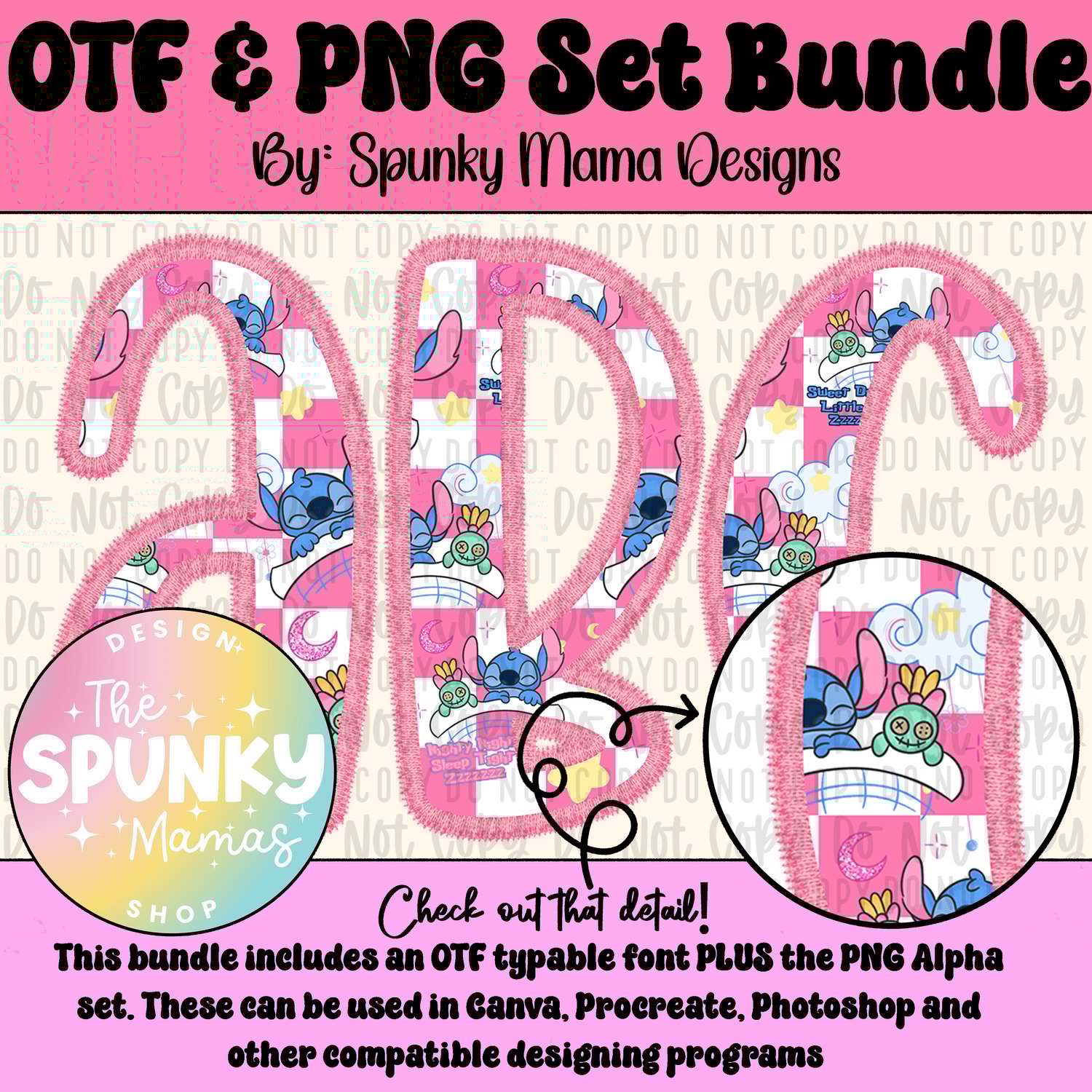 Pink Checkered Naptime Stitch Digital PNG Alpha Set