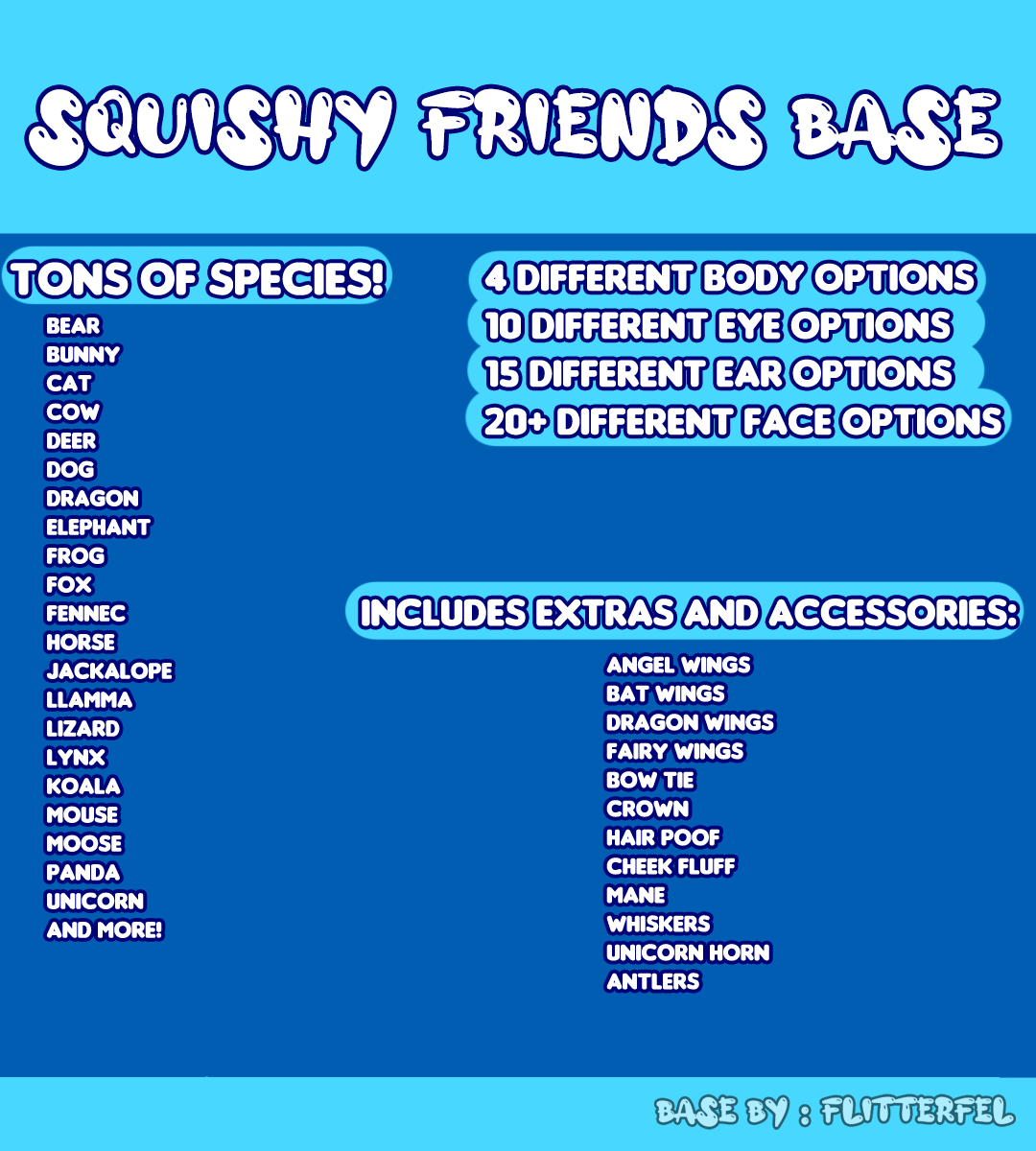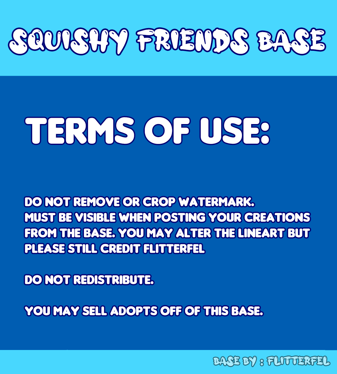 Do not remove or crop watermark, must be visible when posting your creations from the base. You may alter the lineart but please still credit @Flitterfel
