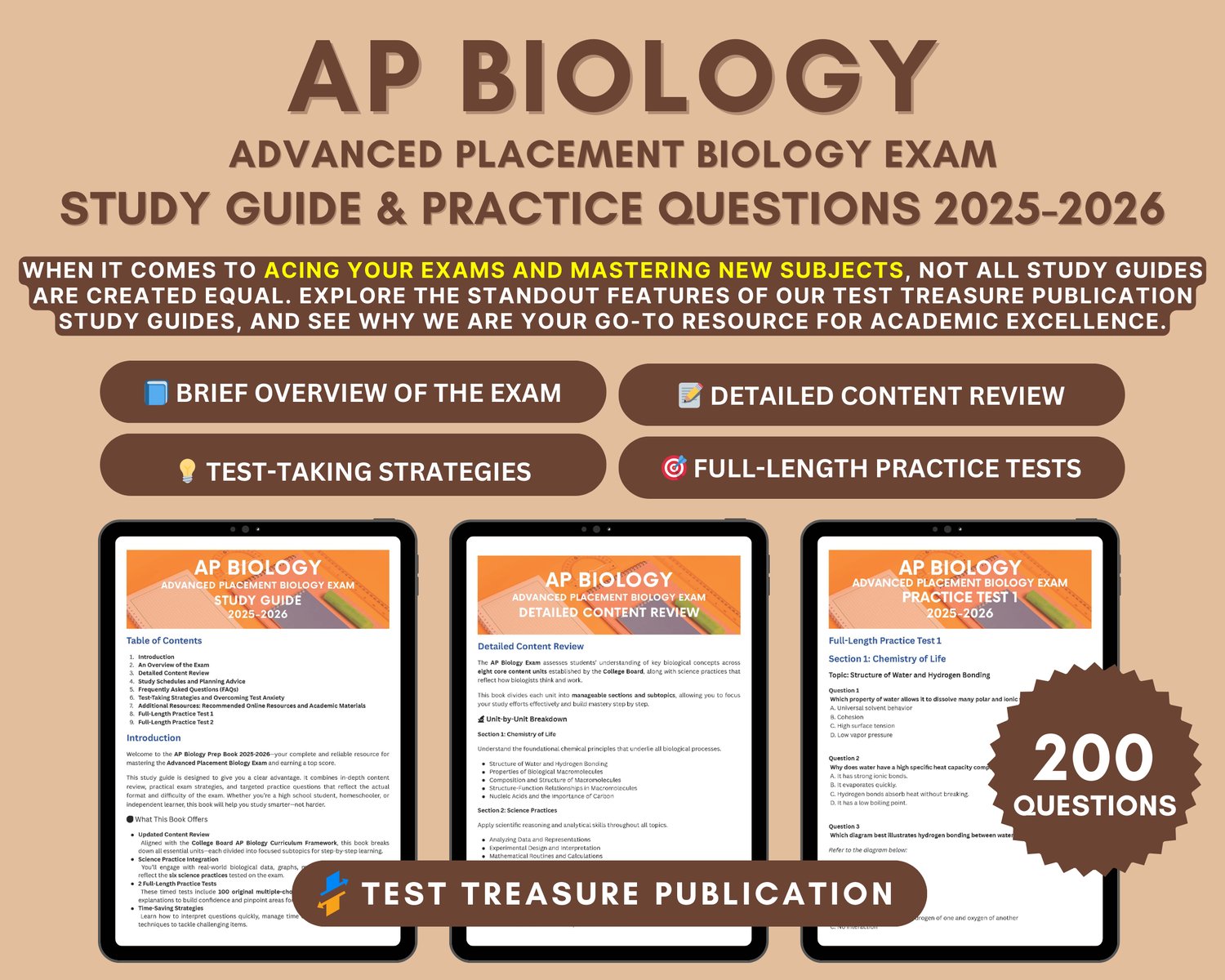 Prepare for success on the AP Biology Exam 2025-2026 with this comprehensive, easy-to-follow digital study guide. Created by Test Treasure Publication, this printable prep book is perfect for high school students looking to earn college credit and boost their AP scores!