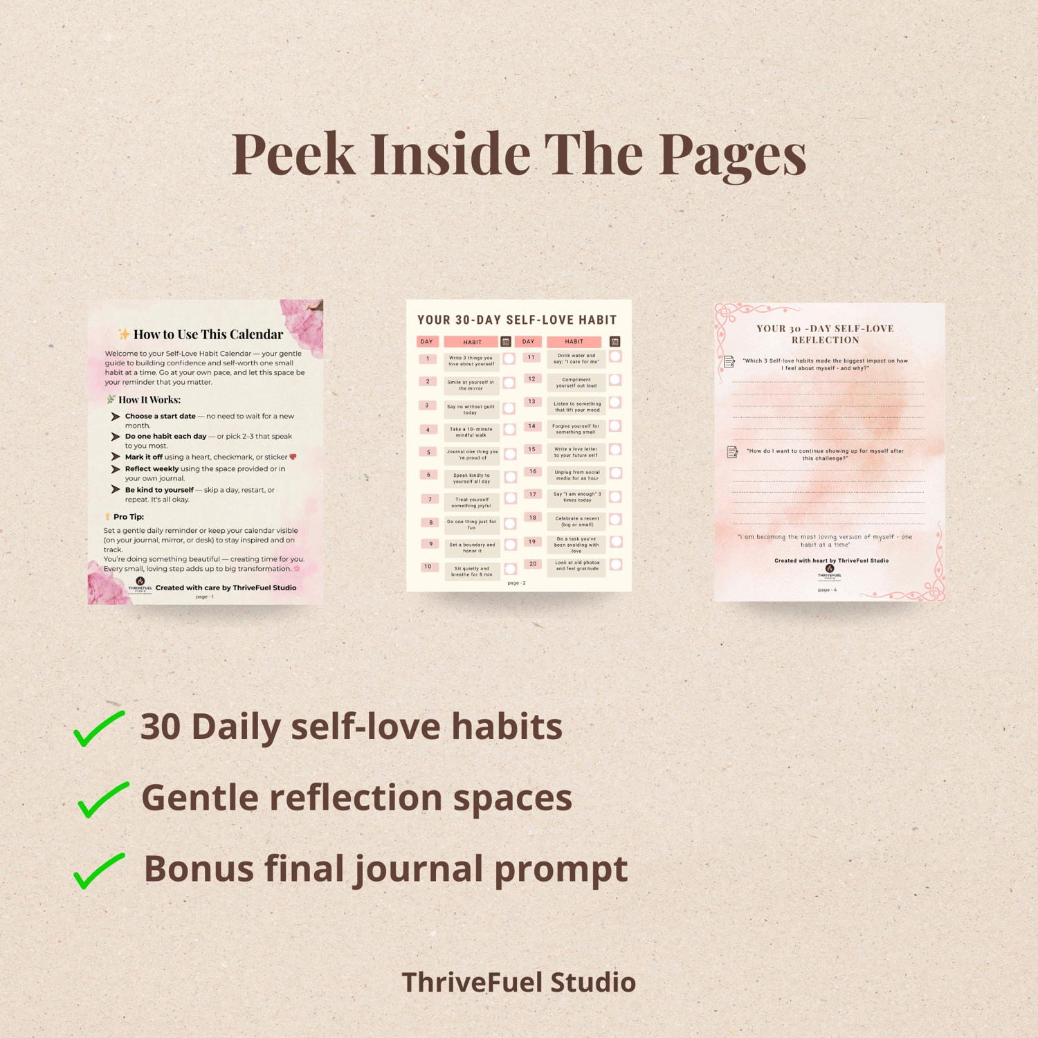 30-Day Self-Love Habit Calendar โ Printable & Digital PDF
