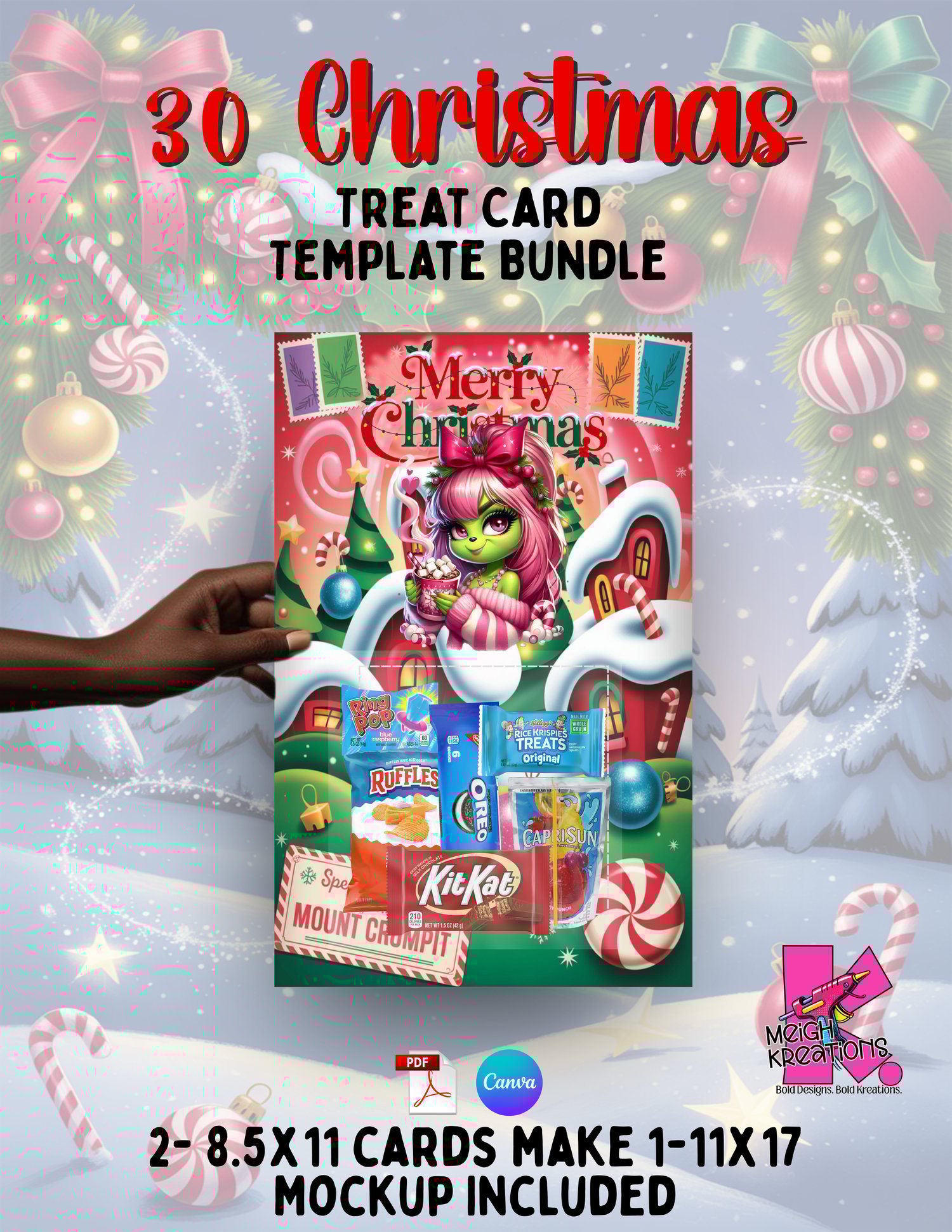 Make holiday gifting fast, fun and profitable with this mega bundle of 30 Christmas Treat Card Templates. Designed for ease and versatility, each template fits standard snacks, small treats and goodies — perfect for classrooms, events, craft fairs or stocking stuffers.