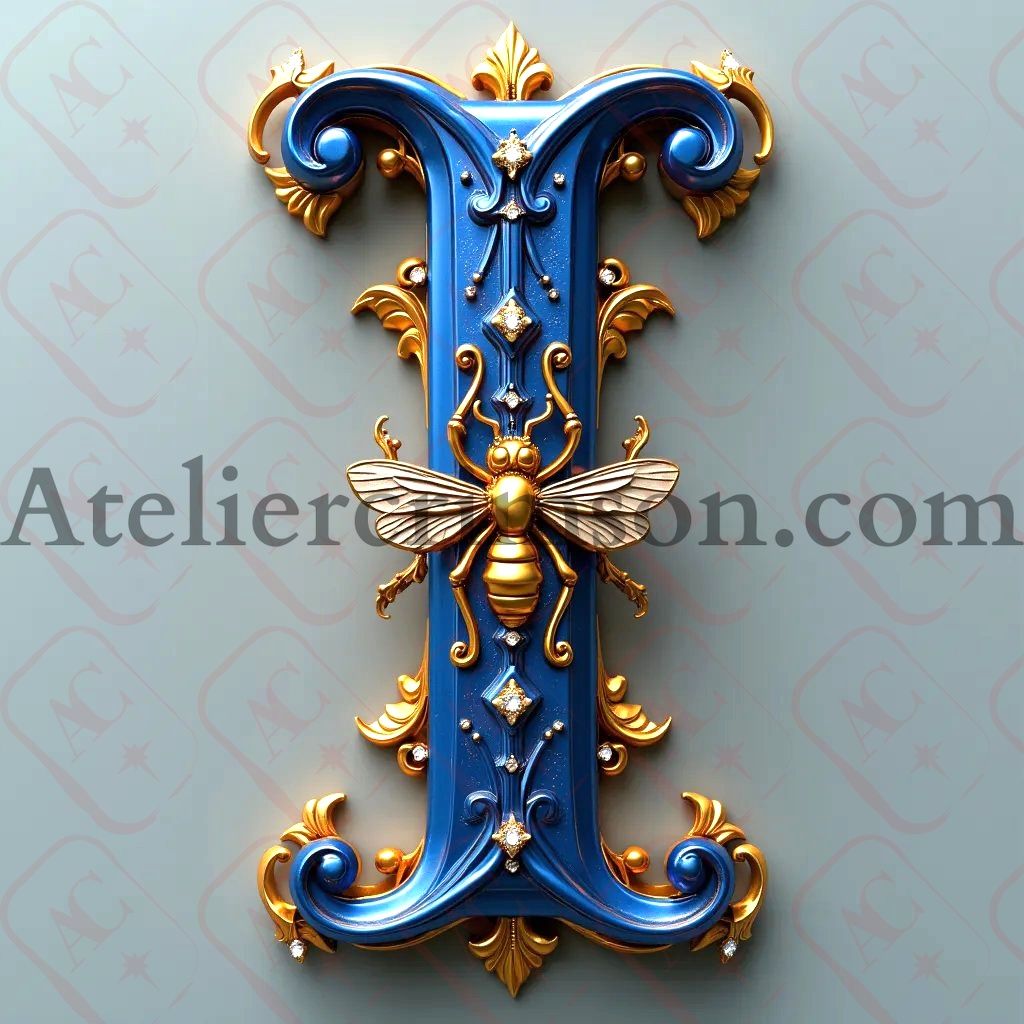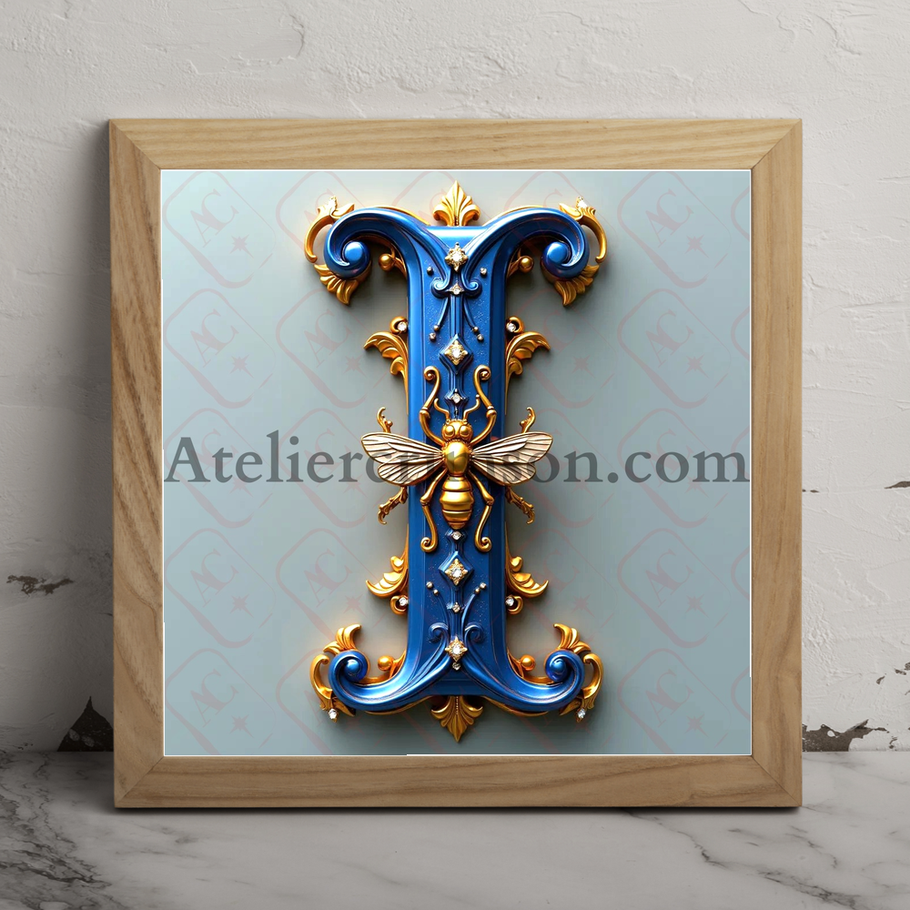 The letter I royal blue bees Download Now this high quality AI-generated image, perfect for adding a touch of tranquility and creativity to any space.