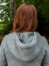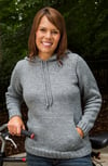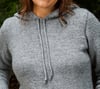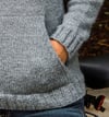 This pullover is worked from the top down, beginning at the back shoulders. The back is worked to the armholes, then placed on hold while the front is picked up from the back shoulders and worked to the armholes. Then the back and front are joined and the body is worked to the bottom edge. The sleeves are picked up from the armholes and worked to the cuffs, with short-row shaping to shape the sleeve caps. The pouch pocket is easy to work – knit the top of the pocket with 2 strands of yarn, divide the doubled stitches to work the pocket facing and body separately until they're done, then knit them together to close the bottom of the pocket. The hood is large enough to be comfortable, and the ties ensure that it will stay in place no matter how hard the wind blows.