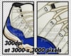 1) Jpeg with white background: A3 size at 300ppi (3507px X 4961px) in RGB color mode