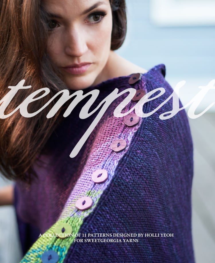 Tempest is a collection of handknit patterns by Vancouver knitwear designer, Holli Yeoh, for the artisan hand-dyed yarn company, SweetGeorgia Yarns.
