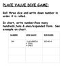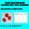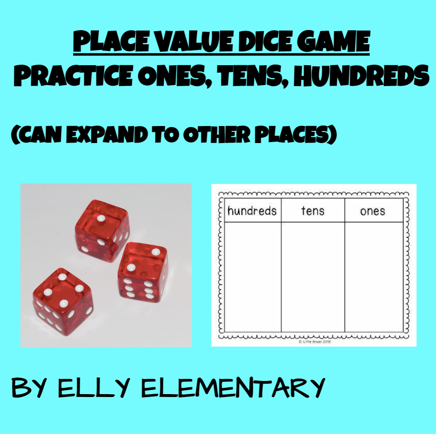 Easy place value game to use at end of math block or in a center. Using only 3 dice and score sheet, students can practice numbers up to 100s place, Can easily be expanded to 1,000s and 10,000s for students who want a challenge.