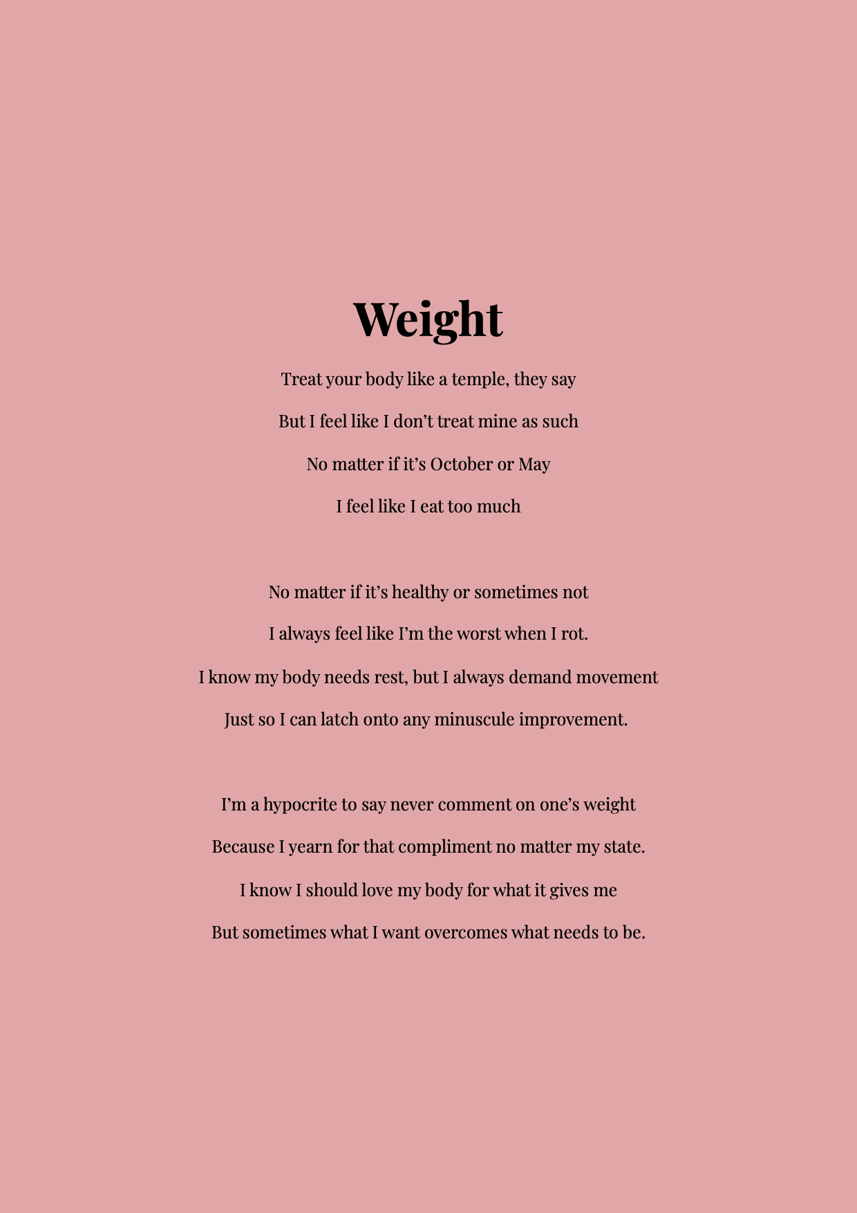 Your weight does not define you. Try to love it no matter what.