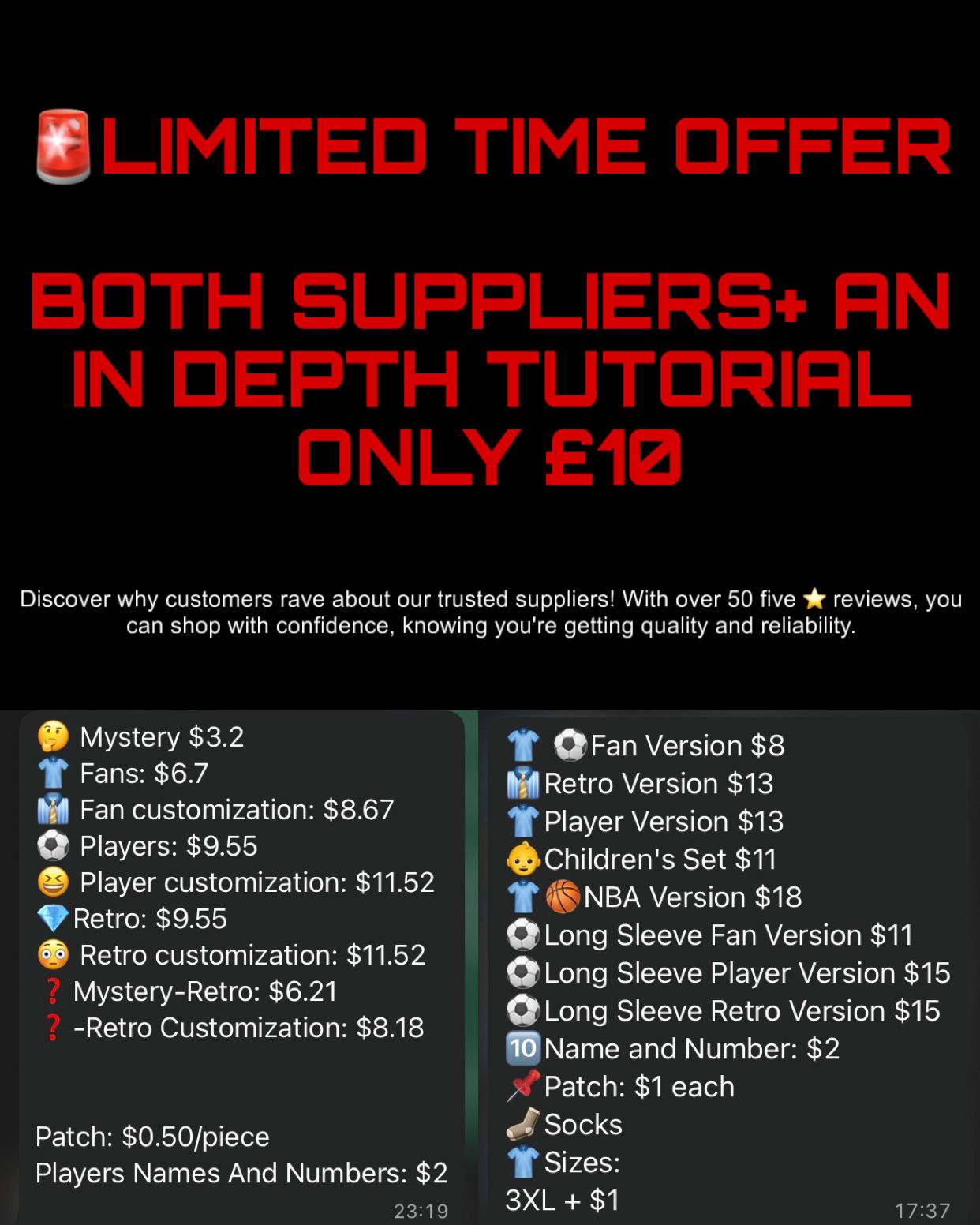 Ready to start your own jersey business or just want unbeatable deals on top-quality kits? This product gives you exclusive access to both of my personal jersey suppliers – the cheapest in the world, trusted and used by hundreds of resellers.
