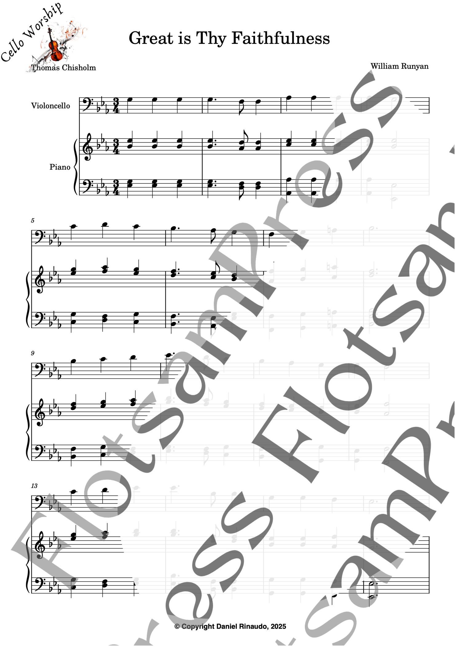 This arrangement of Great is thy faithfulness is written for beginner to lower-intermediate cello players, with a simple and supportive piano accompaniment. Perfect for church services, lessons, or home practice.