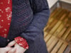 L’encolure en V et les finitions du bas du corps et des manches sont tricotées en côtes 1/1. Le corps est tricoté selon le motif de dentelle en aller-retour tandis que les manches sont en jersey endroit et tricotées en rond.