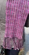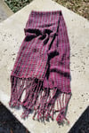 Bamboo Shoots Scarf is knit flat in an eyelet pattern using sport weight yarn. Once blocked, a surface crochet technique is worked through the eyelets along the length of the scarf. The tails at each end (with additional MC and CC lengths of yarn) are worked into a bicolor twisted fringe. The pattern is written only. The pattern has been tech edited.