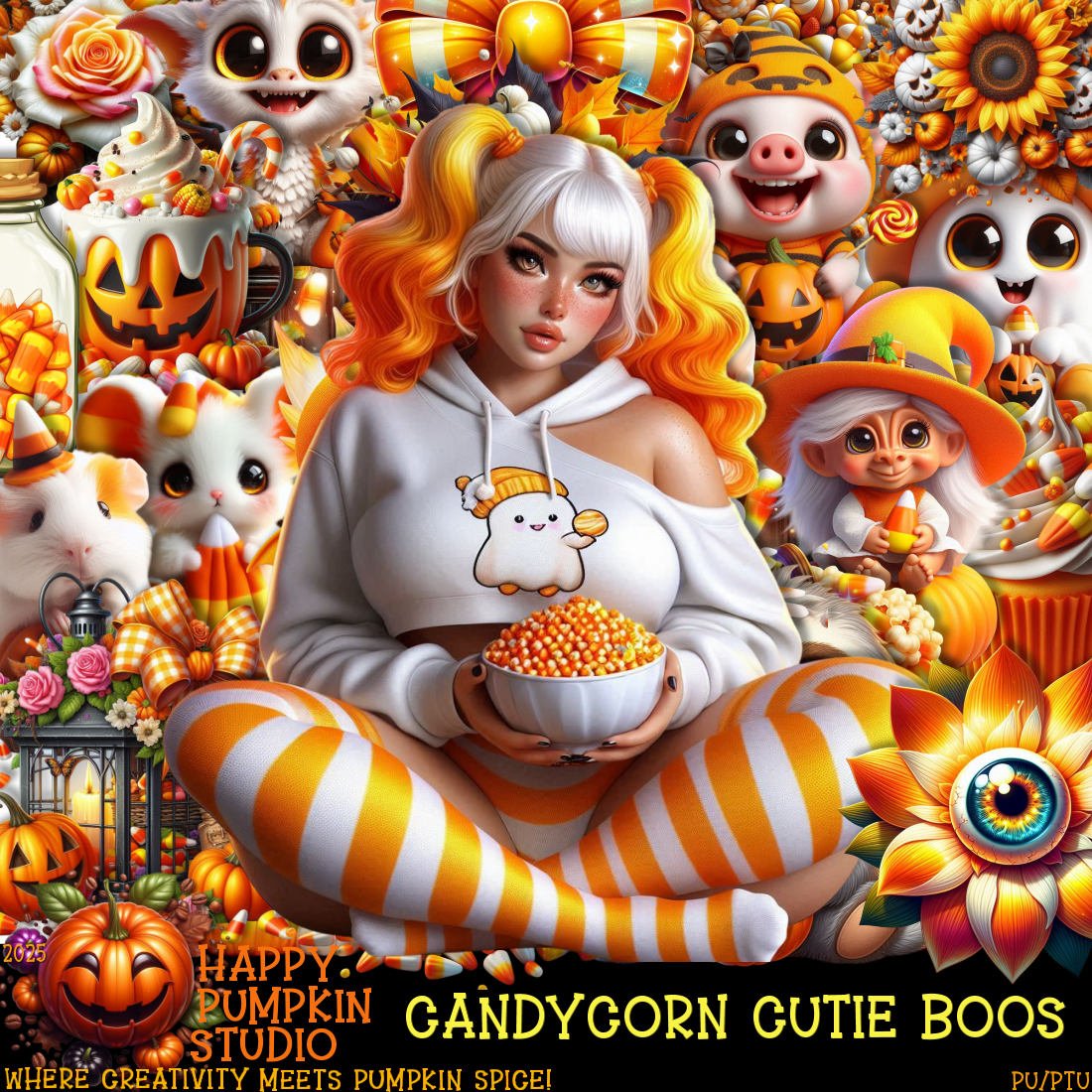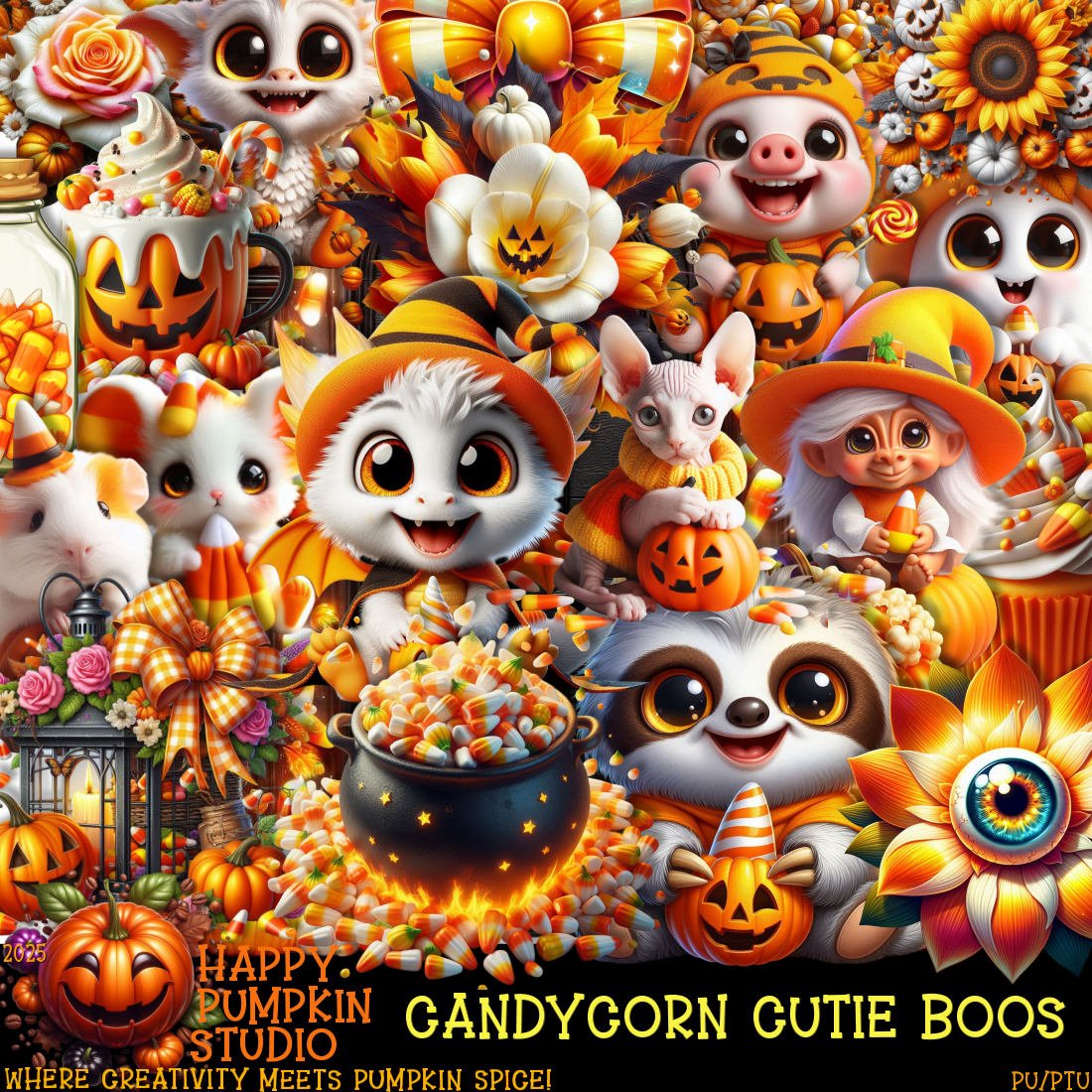 Get ready for the sweetest spook of the season! The CandyCorn Cutie Boos kit is bursting with whimsical Halloween charm — perfect for adding a playful twist to your digital creations. Packed with adorable candy corn characters, smiling ghosties, cheerful pumpkins, and batty little friends, this kit brings a soft and spooky-cute vibe to every project.