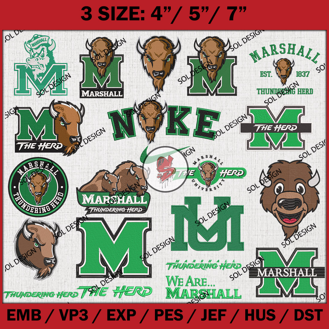 20 Marshall Thundering Herd Bundle Embroidery Files, College Football Embroidery Designs, NCAA Marshall Thundering Herd Machine embroidery Design Bundle, Ncaa Marshall Thundering Logo bundle, Digital Download